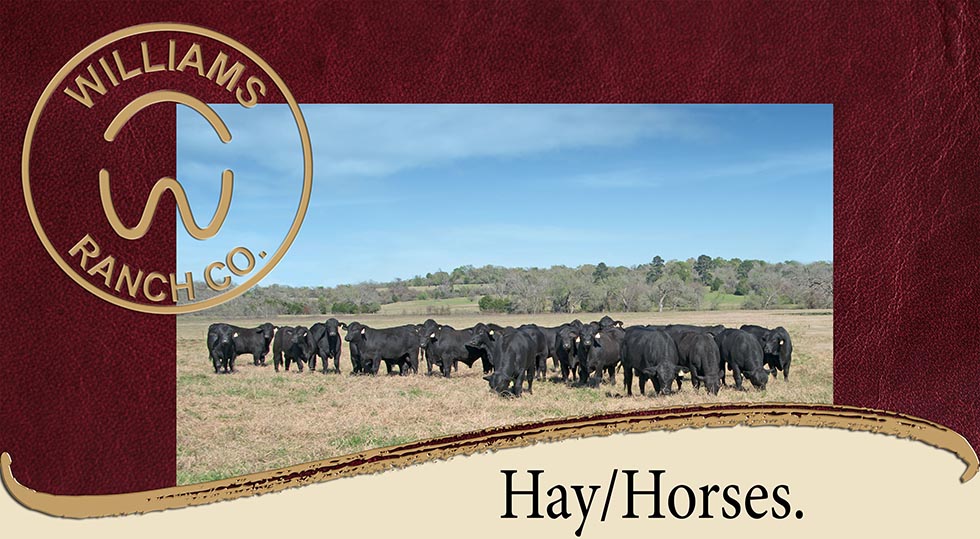 Williams Ranch Co. raises large and small bales of high quality irrigated alfalfa hay and has been since the early 1970’s. Hay is marketed throughout the year and is available in large and small quantities. We have varying qualities of hay for cattle and premium quality hay for horses. For information on the hay, please contact: Nancy Carpenter 432-336-2294 or email